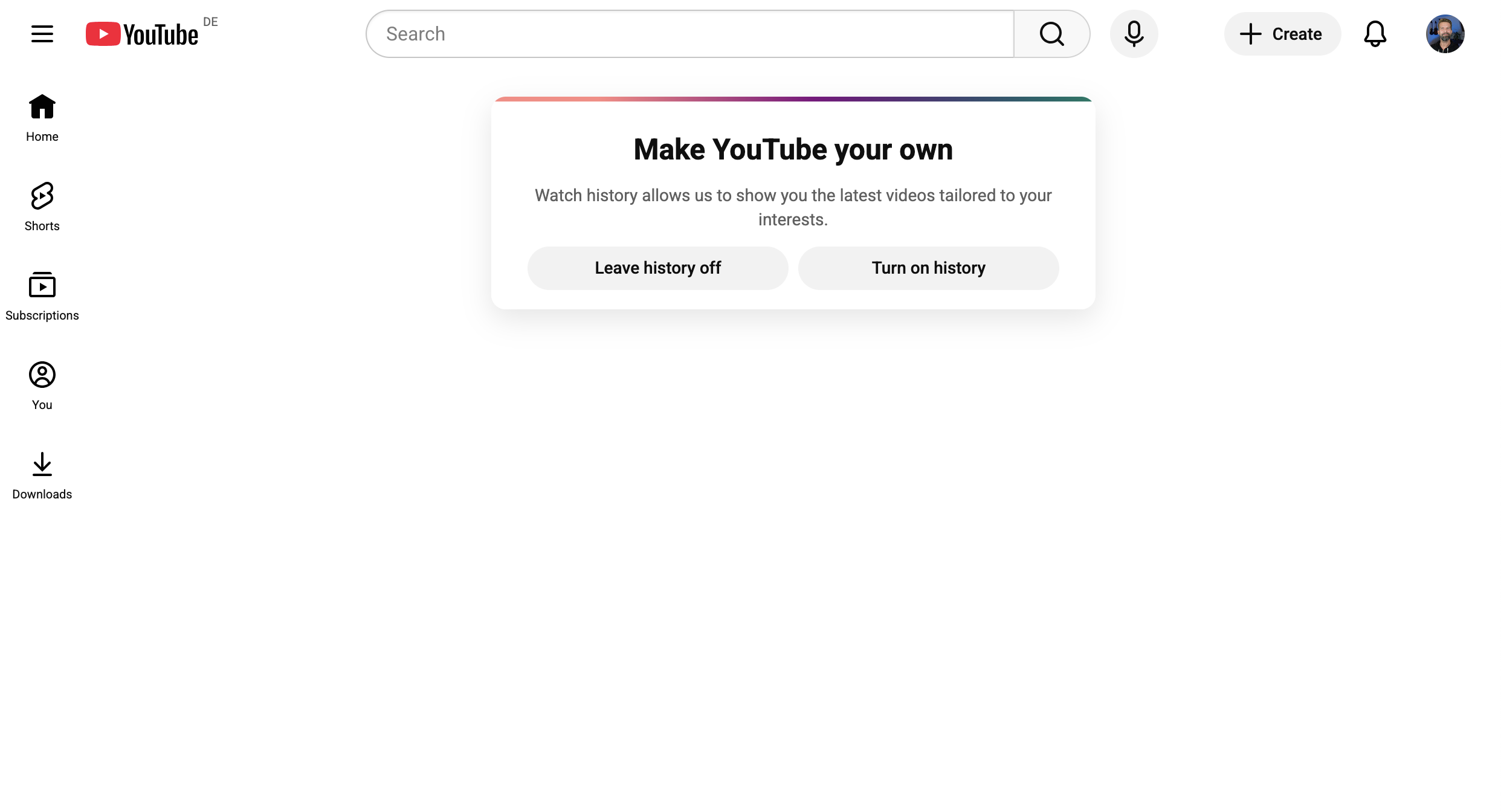 First, you can navigate to your watch history and turn it off. After you've done that, your home feed will be empty. No random videos or engagement hacks to pull you in.