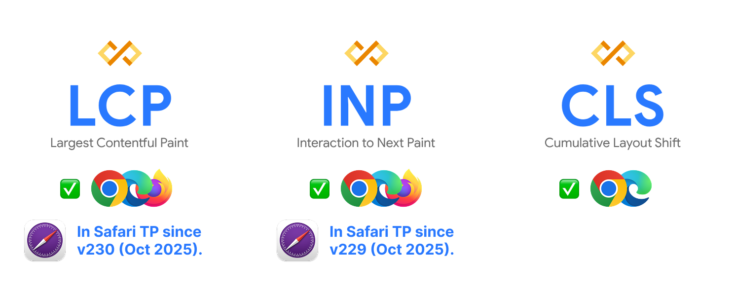 When Google started pushing the Core Web Vitals metrics, they were pretty much a Chromium-only thing. Which was a bummer, because then we couldn't measure the experience of people using other browsers.