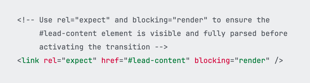 Only 10% have heard of rel="expect". In combination with blocking="render" the new attributes enable smooth cross-document view transitions. Cross-document view transitions are still a Chromium-only thing, but once they ship in more browsers, it'll be time to check out these new attributes.